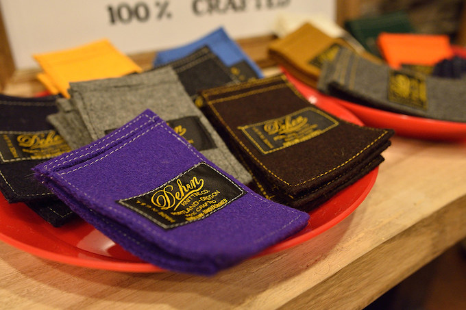 最高品質のニットを製造しているDehenは、モーターサイクルセーターやスクールセーターなどのカスタムメイドを創業当時から行っている。旗艦店にはこれらのセーターからバーシティジャケット、コットンネルを使用したグッドルッキングシャツ、ベースボールキャップなど幅広くラインナップ。さらに1941年にオレゴン州で創業されたSULLIVAN社のグローブの取り扱いも開始。ノベルティとしてウールで製作されたビジネスカードホルダーが用意されているので、要チェック!