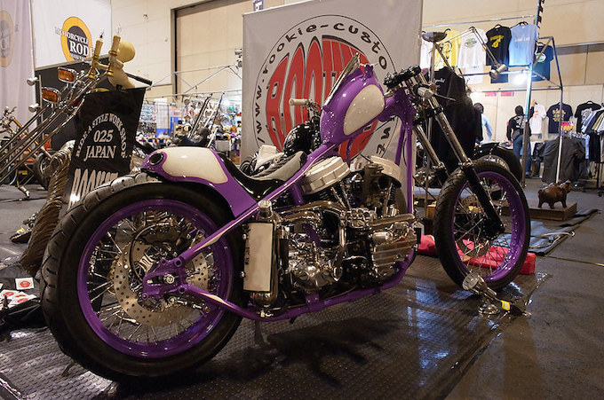パステル調のパープルカラーが印象的なROOKIEが手掛けたパンヘッド。シートカウルの形状に個性を投影したマシンである。