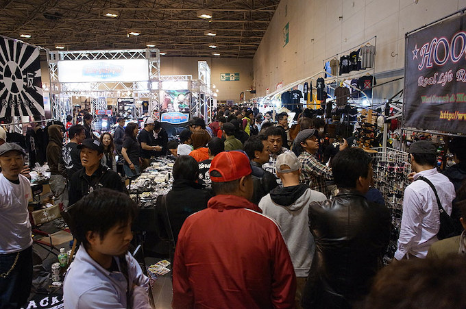 お買い得品を見つけようと混雑するベンダーブース。イベント限定特価などもあり、ショッピングもカスタムショーの楽しみ方のひとつ。