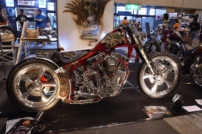 至極のカスタムマシンに美しい女性。これはカスタムショーを華やかに演出してくれる万国共通の組み合わせと言える。
