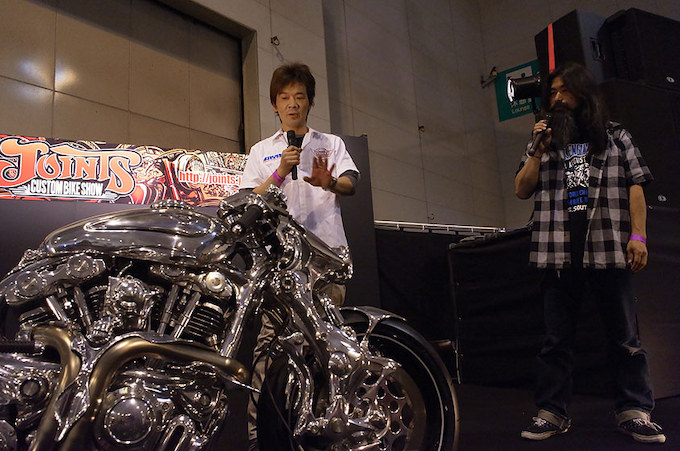 もはや名実共に全国屈指のカスタムショーへと成長を遂げた「JOINTS CUSTOM BIKE SHOW」。この名古屋発信の一大ムーブメントは、日本のカスタムシーンを動かす巨大なチカラを秘めている。2012.04.25にポートメッセ名古屋で開催された今期のJOINTS 2012は、雨風が吹きすさぶ悪天候だったにも関わらず、入場者数8500人、出展バイク数320台という過去最大級の規模で開催された。今期はコンテンツの充実に目を見張るものが! JOINTSの目玉コンテンツであるライドインショーをはじめ、プロダンサーによるポールダンスショー、さらにカスタムペイントの祭典「PAINT WALL 2012」も同時開催。そして来場者にスポーツスターがプレゼントされる「GET THE SPORTSTER」に加え、「AMD WORLD CHAMPIONSHIP 2011」のフリースタイルクラスで優勝を飾ったTAVAX ENGINEERINGが手掛けたフルスクラッチカスタム「TAVAX 2011V」が会場に展示され、来場者を釘付けに! それではこの熱きJOINTS 2012のすべてを最速レポート。
