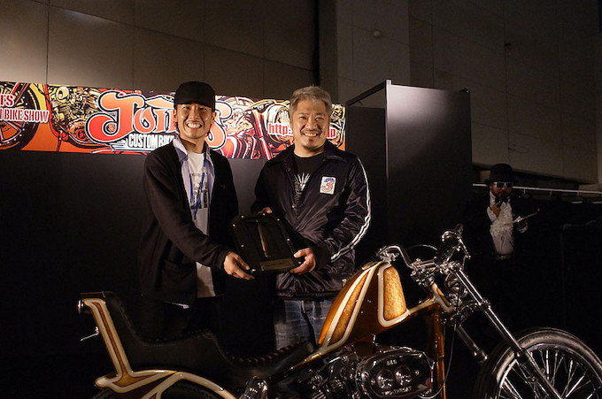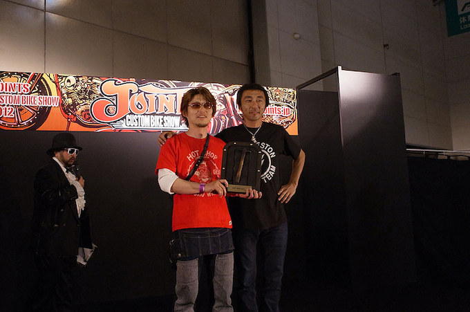 HOT CHOPのケンタロウさんとHOTBIKEの池田さんで記念撮影。ダブルのアワード受賞、おめでとうございます!