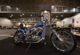 ハマーサイクルのブースには対照的な2台のナックルヘッドが展示。HARDLY-DRIVEABLEのチョッパーにツインキャブボッバーである。