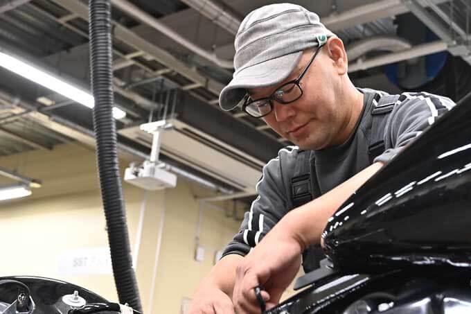 そして見事、日本一のハーレーメカニックの称号を獲得したのは、二連覇となるハーレーダビッドソン北九州の嶋崎 智さん。おめでとうございます!曰く「正直ほっとしています。昨年の失敗を今回は生かせたのが勝因だと思います。でも反省するべき点も多かったので、また来年も頑張りたいと思います!」