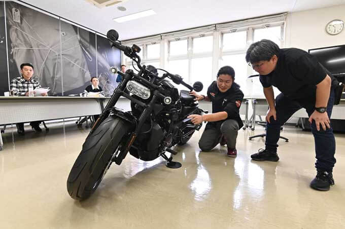 こちらは午前中に開催されたCXコンペティション最終選考会の模様。スポーツスターSを販売対象にして接客のプレゼンテーション形式で競われた。