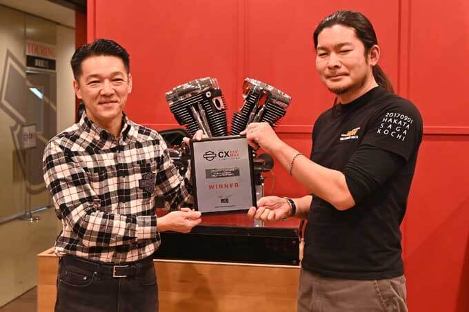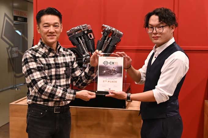 そしてCXコンテストの優勝はハーレーダビッドソン博多の赤塚 大輔さん。日本一のセールススタッフの称号獲得、おめでとうございます! 曰く「若い方々にも今後は頑張っていただきたいです!」