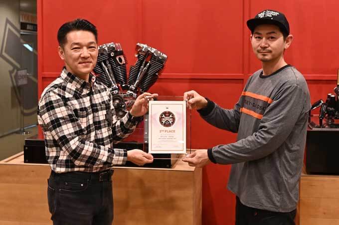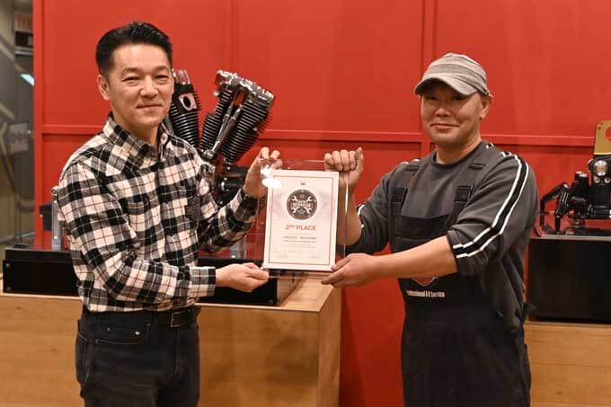 第2位は、ハーレーダビッドソン京都/洛西の美谷島 洋途さん。曰く「ここに参加できたことが誇らしいです。明日からまた勉強をし直します!」