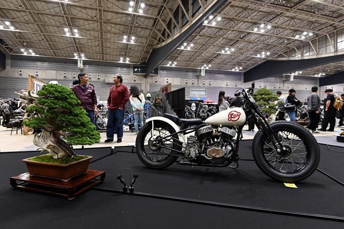こちらはファーストアローズが展示した陸王レーサー。注目はブースを厳かに演出する盆栽だ。その迫力たるや!!