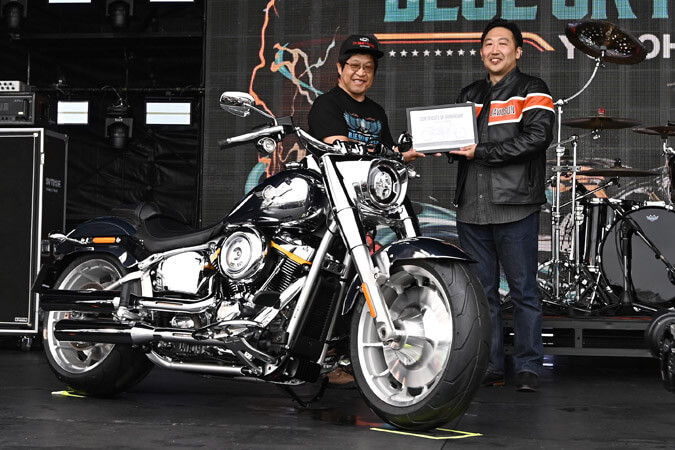 そしてサプライズとして、ファットボーイ グレイゴーストをいち早く購入されたオーナー様の納車式も行われた。