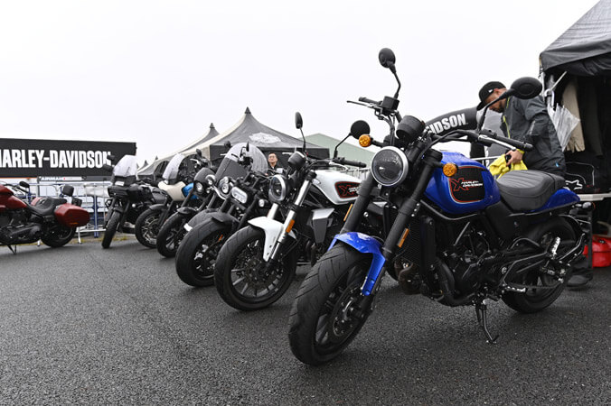 ハーレーの最新モデルに試乗できるデモライドでは2025年モデルがズラリと揃う。