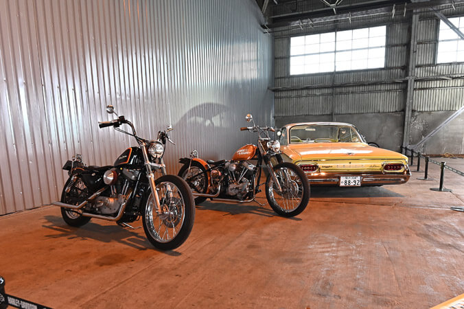 こちらは地元本牧から参加のムーアイズブース。ハーレーのチョッパーにオールドカーを展示。