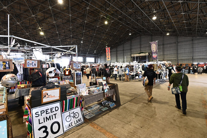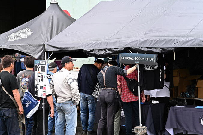 ブルースカイマーケットでは全国のハーレー正規ディーラーが数多く出店。掘り出し物を目当てに人垣が絶えることはなかった。
