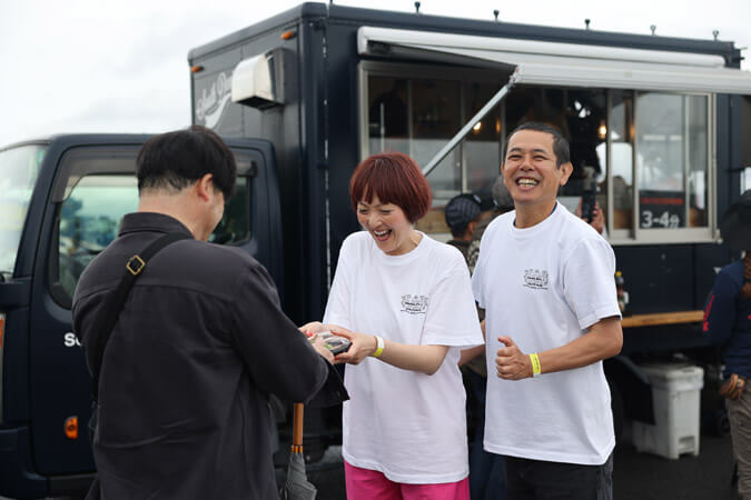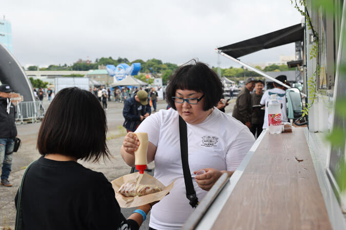 こちらは安藤なつさんのフードトラック。サービスで、なつさん本人がマヨネーズをトッピング!
