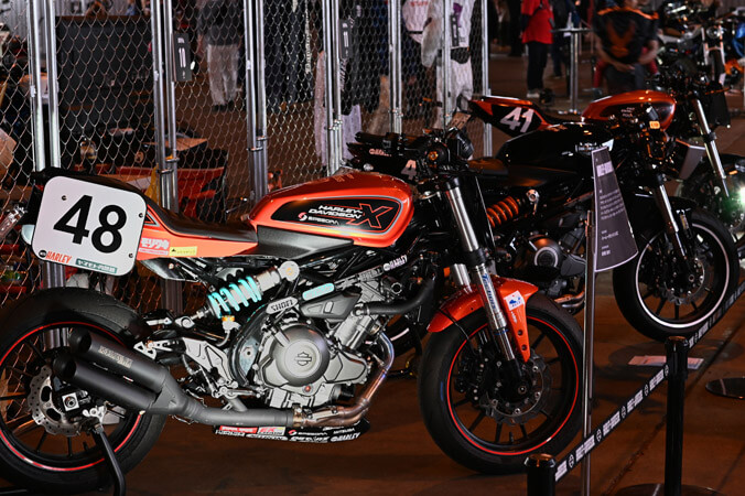 全国のハーレー正規ディーラーが手掛けたカスタムが会場で競い合う「i AM CUSTOM」参加のマシン。