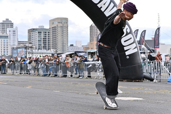 そして圧巻のパフォーマンスを披露してくれたのはスケートボーダーの池 慧野巨さん。この飛距離と高さに絶句!