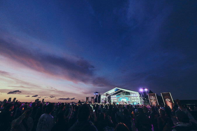 横浜みなとみらいをバックに、山下ふ頭特設会場で2年目の開催となるブルースカイヘブン。