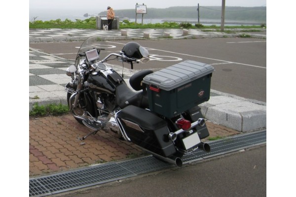 昨年、デタッチャブルパッセンジャーバックレスト&ラゲッジラックに、どでかいAVボックスを取り付けたので、2人乗りでも荷物はたっぷり積めるようになりました。北海道ツーリングでも余裕でした。簡単に取り外せるので最高です。