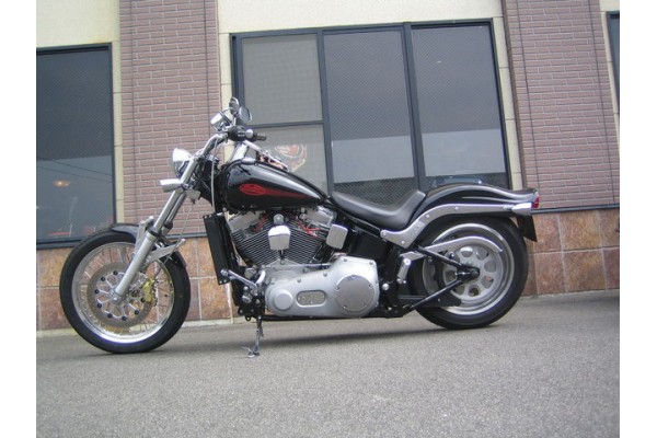 FXSTですが、プライマリカバーとカムカバーを変えてしまえば見た目はFXSTCと何ら変わりありません。むしろオイルタンクが黒なので、カッコイイですよ。
