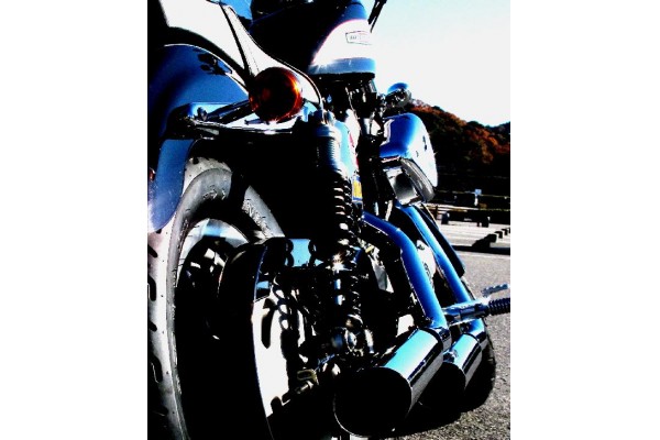 以前乗っていた国産V2気筒800ccに比べ車両重量は重いのに低重心のため扱いやすい。国産V2はよく立ちごけしてたけど今度のスポスタはこける気配もない。エアクリをK&Nハイフロータイプ、フルチューンCVキャブ、マフラーをスクリーミンイーグルⅡを装着し、ストックから格段に向上したパワー、これぞハーレーという排気音を堪能しています。