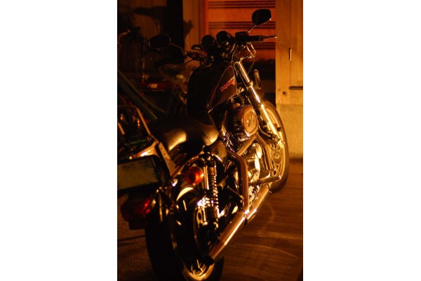 Wディスクの重々しさが嫌で、883シングルフォークを移植しシンプルなフロント足回りにし3インチ延長。Rはトランプチューンのオーリンズサス(眼から鱗の激変ぶり!)。純正9本キャストに換装しリンクルBK塗装。XL本来のスリムラインを象徴する旧純正チビタンに換装。走りの面はCVキャブにダイノジェット・サンダースライド、ハイフロー・エアクリ、TASTE製ワンオフマフラーの吸排気チューンでトルクフルに加速も鋭く!それでいて扱い易くコスト的にもお手軽なダイノジェトチューンはお薦め。電装系はブルーストリークコイル、SE製レース用イグニションモジュール、ノロジープラグコード、イリジウムプラグと、火花バチバチでトルク&パワーもUP!排気音も小気味良くなる♪駆動はミスミチェーンドライブキットに換装しスタイリッシュ且つシャープな走りに!ピンストゴーストフレアタンク等、全体的に艶有/艶消の緩急つけたブラックアウトに。
