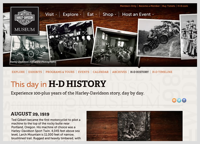 ここ Virgin-HARLEY.com でも ハーレー歴史年表 と題したコンテンツを作成しましたが、ひょんなことからアメリカ本国のハーレーダビッドソンサイトにて、より詳細な年表コンテンツがあがっていたのを発見したのです。