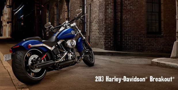 アメリカのハーレーダビッドソンモーターカンパニーのウェブサイトにて、2013年モデルという位置づけでブレイクアウトの新色が発表されていたので、こちらでお知らせさせていただきます。