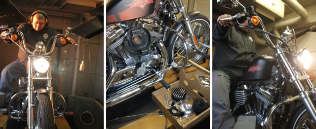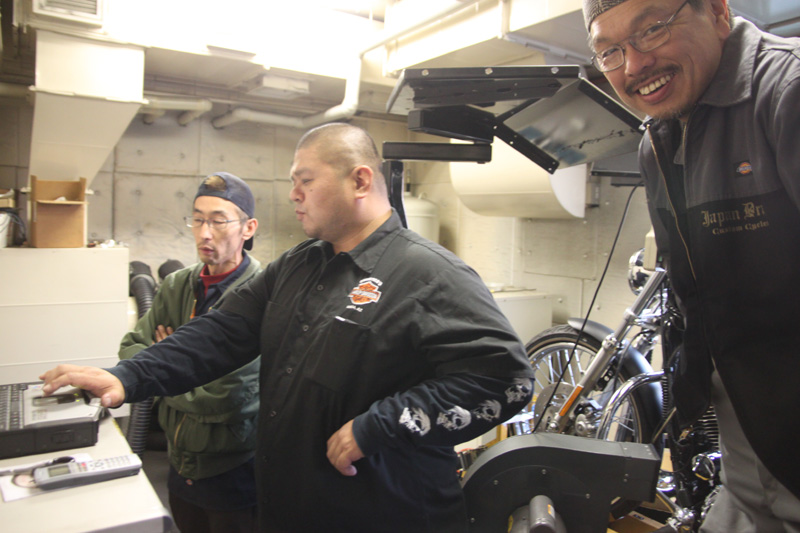 早速、2013年式 XL1200V セブンティーツーをシャーシダイナモに載せます。