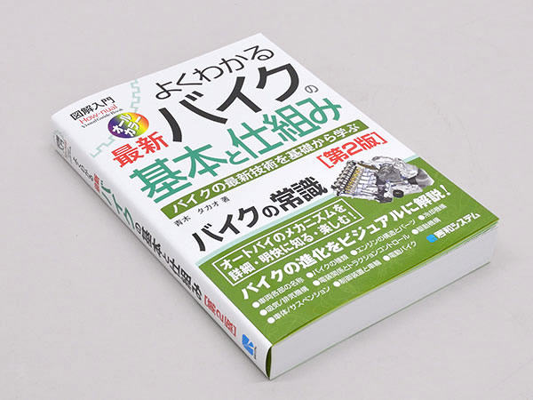 雑誌ホットバイクジャパンやバージンハーレーでライターとして活躍する青木タカオ氏によるバイクメカニズムの入門書、「図解入門 よくわかる最新 バイクの基本と仕組み 第2版」(秀和システム)が発売された。車体を構成する主要パーツごとに写真やイラストを使ってメカ初心者でもわかりやすいよう丁寧に解説されている。さらに各二輪車メーカーが採用している最新のテクノロジーまで紹介されているので、ビギナーからベテランまで楽しめる内容となっている。もちろんハーレー乗りが読んでも十分に楽しめるはずだ。