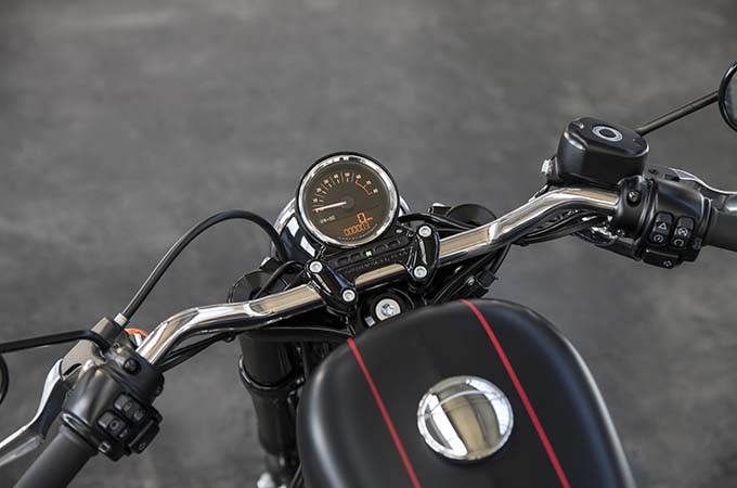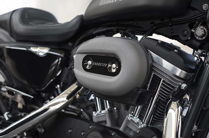 リアフェンダーは従来のボブタイプのスポーツスターフェンダーよりも1.5インチカット。スロット付き・ベルトガード、ライトニングホールを施したレースバイク用の部品を模したマフラーシールド、そしてトリプルクランプの前の低い位置に取り付けられた、アナログタコメーター/デジタルスピードメーターを搭載した直径4インチのメーターが新ロードスターの「削ぎ落とされた」スタイリングを創出している。2016年4月19日(火)より全国の正規販売網にて販売開始!