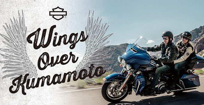 ハーレーダビッドソンジャパンは7月23日(土)?24日(日)に熊本県内の正規販売店2店舗を運営する株式会社神山モータースと供に、(23日 14:00~16:00)内牧温泉観光施設「はな阿蘇美(熊本県阿蘇市小里781) 」で300台以上のハーレーダビッドソンが九州全土から集まる「チャプターツーリング」、(24日 10:00~17:00)「らくのうマザーズ阿蘇ミルク牧場(熊本県阿蘇郡西原村河原3944-1)」で、ツーリングスポット熊本・阿蘇を応援するイベント「Wings Over Kumamoto」を開催(入場無料)します。