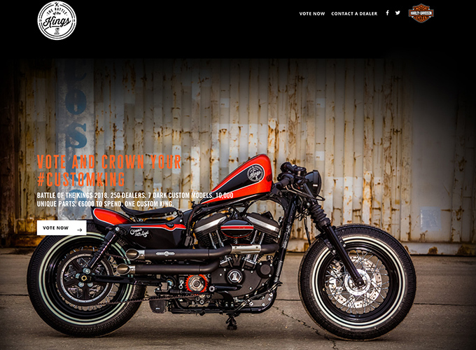 ハーレーダビッドソン主催のカスタムコンテエスト「Battle Of The Kings」が2月1日(木)から3月2日(金)までの間、特設WEBサイトで開催されることが決定した。このコンテストはハーレーがラインナップする数多いモデルの中でもひと際人気が高いスポーツスターファミリーのXL1200Xフォーティーエイトをベースに全国のハーレーダビッドソン正規ディーラー53店が作り上げた渾身のカスタムマシンを特設WEBサイトに公開し、一般ユーザーの方々に投票を募りナンバーワンが決定される。発表は3月16日(金)から18日(日)までインテックス大阪で開催される大阪モーターサイクルショー2018で行われる。ナンバーワンカスタムビルダーを決定する投票に、是非参加ください!