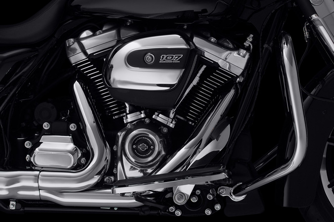 排気量1745ccのMilwaukee-Eight® 107エンジンを搭載。クローム&ブラックのコントラストがハーレーのツーリングモデルらしい高級感を演出している。