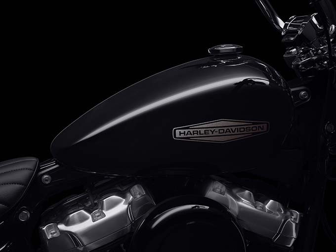 排気量1,746ccのミルウォーキーエイト107エンジンはブラック&サテンポリッシュ仕上げで上品な輝きを放っている。マフラーは2 in 2のショットガンタイプ、シートはタックロールのソロシート、フューエルタンクは容量13.2Lで、カラーはビビッドブラックのみのラインナップとなっている。